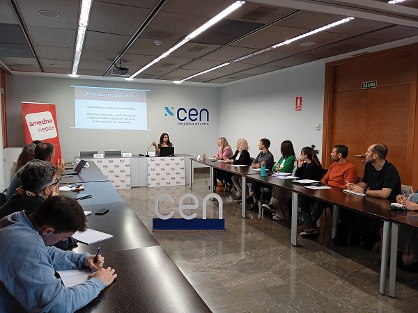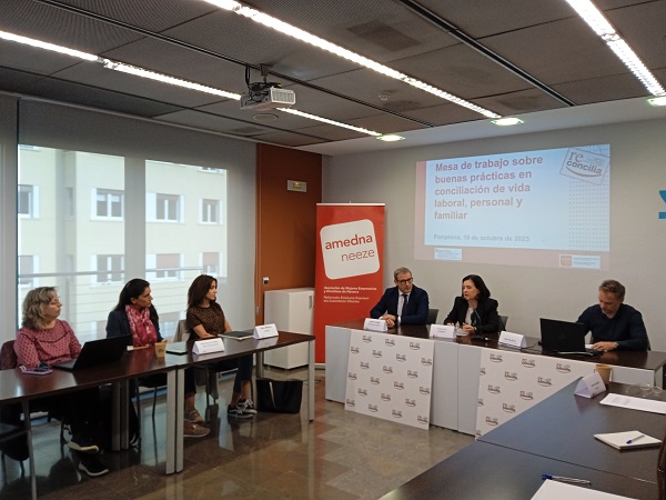 Treinta empresas y entidades participantes en la red Reconcilia se han dado cita en la Mesa de Buenas Prácticas en Conciliación, organizada por AMEDNA-NEEZE junto al Departamento de Derechos Sociales, Economía Social y Empleo del Gobierno de Navarra, en el marco del proyecto del Sello Reconcilia.